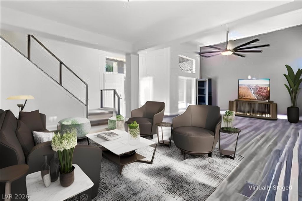 Welcome to this beautifully remodeled home in the heart of Green Valley, where modern elegance meets functionality. The chef's kitchen is a true showstopper, featuring exotic waterfall granite, an extended 5-foot island, an additional breakfast bar, KitchenAid appliances, a convenient pot filler, and soft-close shaker white cabinets. Experience the flow of the open-concept great room, wired for media, and durable sleek vinyl plank flooring. The custom steel cable stair railing adds a contemporary touch, complementing the all-new fixtures, switches, and fans throughout the home. Retreat to the luxurious primary suite, a sanctuary of comfort with seashell limestone countertop and Grecian limestone accents, a lavish 70-inch soaking tub, and an oversized custom shower for a spa-like experience. Brand new tankless water heater installed for efficiency. This home is a reimagined masterpiece, perfect for those who appreciate exquisite design and modern conveniences. Paseo Verde Park nearby.