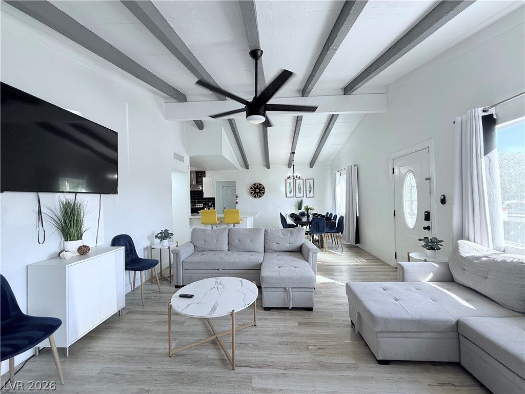 Here's your chance for a turnkey, newly renovated, beautifully maintained oasis in Downtown Las Vegas. This 4 bedroom, 2 bathroom home is offered fully furnished with spacious rooms, updated baths with custom tile showers, and a fully equipped kitchen. Enjoy your own private resort-style backyard with a pool, brand new spa/jacuzzi, and new hardscape for low-maintenance outdoor living. Then, step out to the best of the city: minutes to the Las Vegas Strip, Arts District, Fremont Street, and various world class dining and entertainment. Ideal as a primary residence, vacation getaway, or furnished income-generating business (Buyer to verify all operational/regulatory requirements). Showings by appointment only.