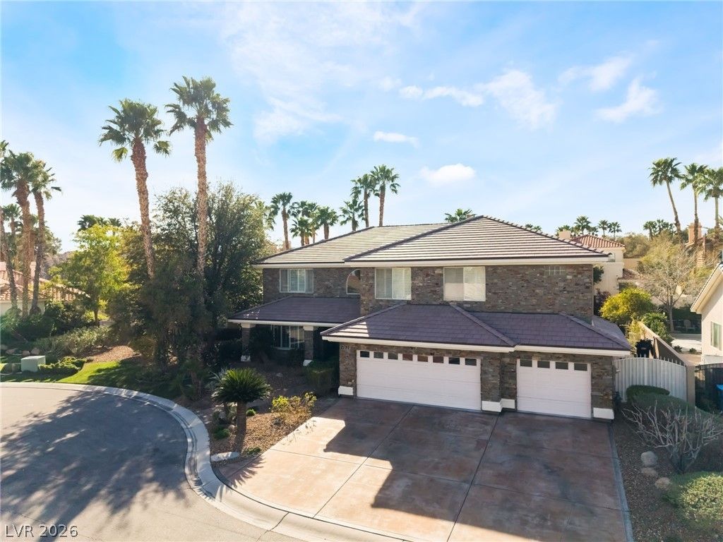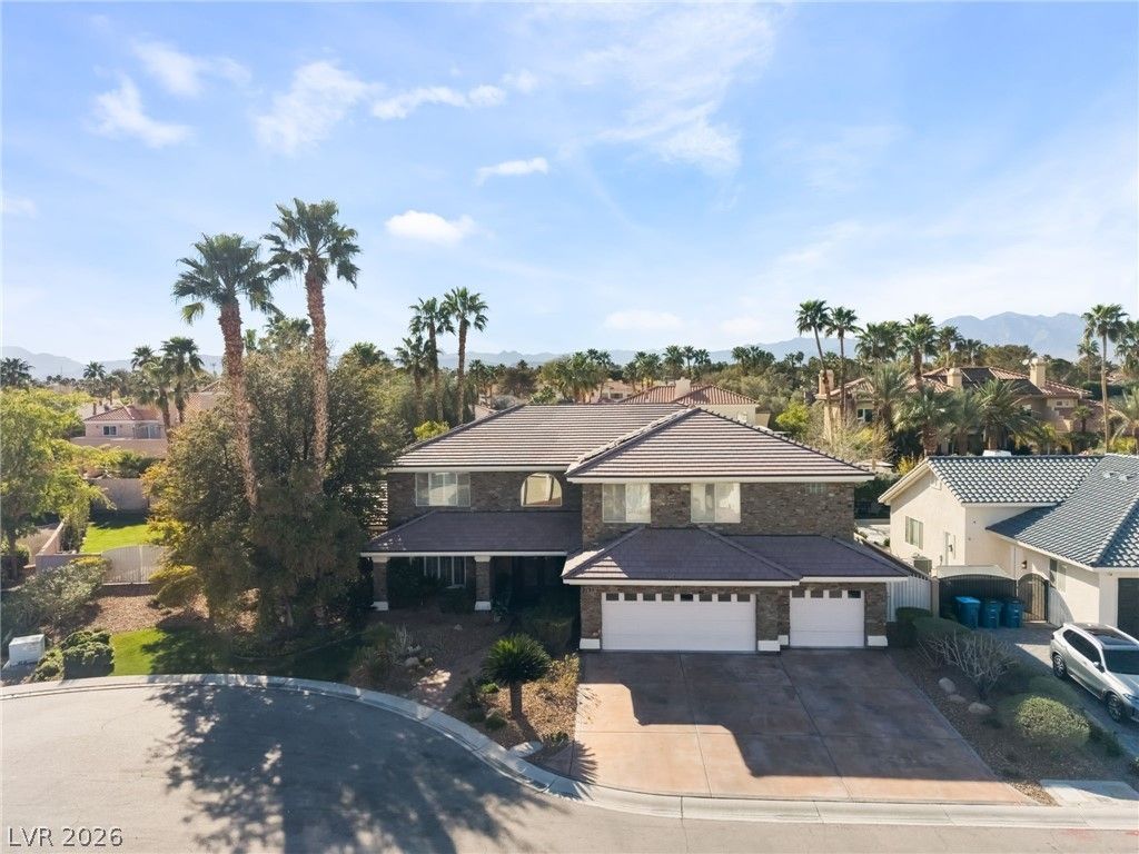 Stunning custom estate in the highly desirable Section 10 area, located within the intimate gated community of Alexa Breanne on a quiet cul de sac lot. Situated on nearly half an acre, this expansive home offers over 5,000 square feet with 6 spacious bedrooms and 6 bathrooms. Beautiful exterior brickwork and amazing professional landscaping create exceptional curb appeal. Inside, the home features newer custom cabinets, granite countertops, stainless steel appliances, and multiple living and entertaining spaces. Enjoy a dedicated movie room complete with theater seating and equipment, along with a game room featuring a pool table. The backyard is built for entertaining with a sparkling pool and spa, cabana, outdoor kitchen, and multiple covered patio areas surrounded by lush landscaping. Additional highlights include owned solar providing energy efficiency benefits, Tesla charging station, and pool and landscape services included for a truly effortless luxury living experience.