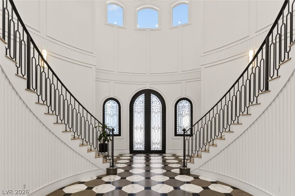 Step into a residence where elegance and modern design meet effortless luxury. A dramatic double staircase sets the tone upon entry, framed by soaring high ceilings and striking, one-of-a-kind lighting fixtures that create a stunning first impression. This exceptional home features 6 spacious bedrooms and 7 beautifully appointed bathrooms, each designed with unique, modern finishes. Custom bedroom closets provide both style and organization, while expansive living spaces offer comfort and sophistication throughout. Entertain with ease in the private wine cellar, or unwind in your own sauna for a true spa-like experience. Outdoor living is equally impressive, with a deck and balcony that overlook a resort-inspired backyard. The outdoor retreat features a sparkling pool with waterfall and spa, surrounded by lush landscaping and a private putting green?perfect for relaxing afternoons or entertaining guests.