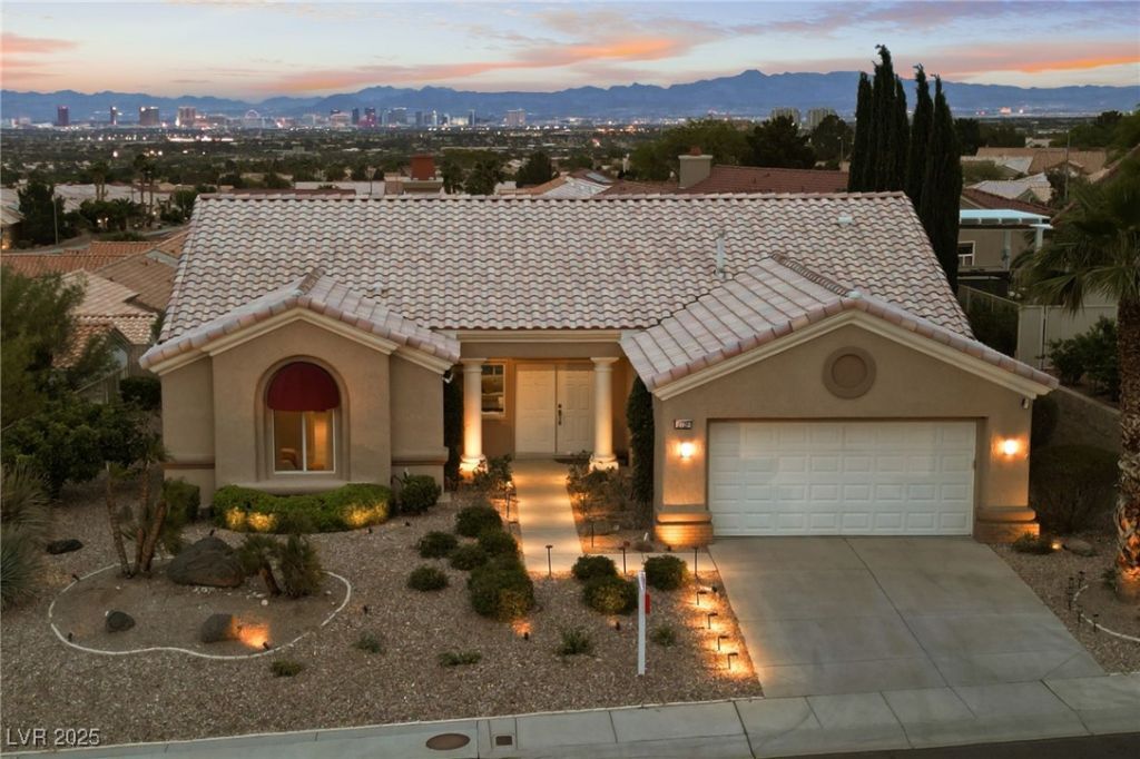 Stunning 1 story home located in the vibrant Sun City Summerlin 55+ community that sits high above with a sweeping 180-degree view of the valley & Strip. The property boasts a solar heated pool & shower, putting green and cover patio, perfect for enjoying a swim while taking in the unobstructed breathtaking Strip view. The home has been upgraded with modern features & finishes, ensuring a comfortable & stylish living experience. Step inside to find an open concept floor plan bathed with ambient natural light, cozy fireplace & luxury flooring that highlights the home's timeless appeal. This home features a designer's kitchen, quartz countertops, white shaker cabinets, stainless steel appliances, updated bathrooms and plenty of storage spaces. It especially showcases large windows that seamlessly blend indoor & outdoor living. This residence is ideal for those seeking a serene & active environment that combines conveniences, elegance & sustainability. **OWNER FINANCE @ negotiable terms**
