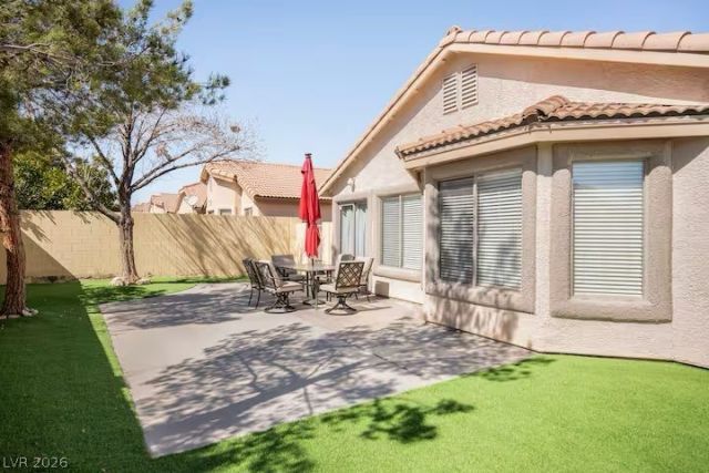 Fully furnished, beautiful and comfortable home in one of the safest and quietest neighborhoods in Las Vegas. 12 minutes from the Strip and Airport and just a minute away from the parks, schools, Smith's grocery, Ace hardware, UPS, gym and great restaurants just a block away. The house is a convenient one story, 3 bedrooms, fully furnished and freshly remodeled. There are 1 king beds in the master and 2 queen beds in the other rooms. Fully tiled shower in master bathroom with brand new vanities and sinks. Nice clean backyard with artificial grass and dining patio furniture. All of the essentials like hair driers, pans, utensils, coffee machine and more are included in your stay.