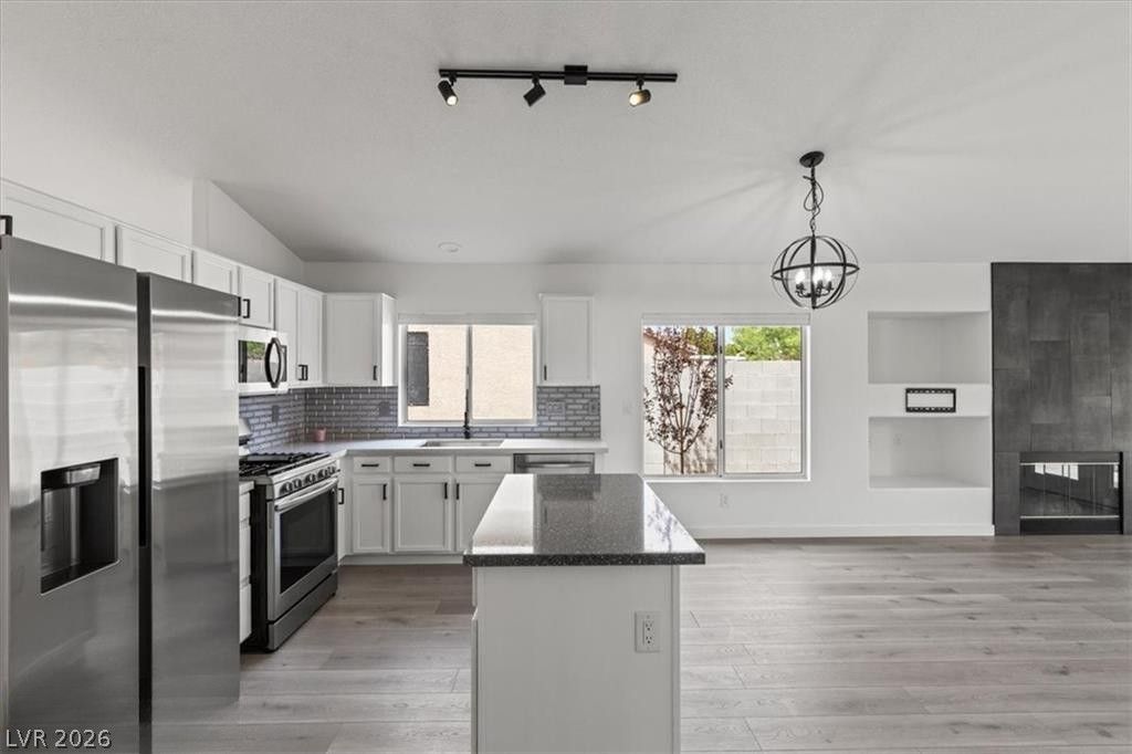 This Northwest home is an absolute stunner, offering a single-story layout with a spacious open floor plan that has been fully remodeled to include modern amenities. The kitchen is a standout feature, boasting gleaming quartz countertops and high-quality stainless steel appliances. Meanwhile, the family room is cozy and inviting with its modern, matte black stone fireplace - perfect for curling up with a book or enjoying a warm fire on a chilly evening. Both bathrooms have been beautifully updated with porcelain tile and elegant marble in the showers, and the laundry room features brand new Samsung washer and dryer. French doors from the family room lead out to a covered patio area, where you can relax and enjoy a new synthetic grass area and a custom patio space. Additional features include a brand new water heater and epoxy floors in the spacious 2-car garage.