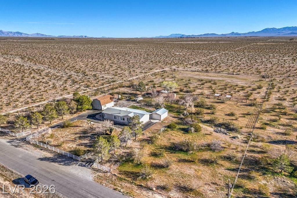 Affordable Ranch in Pahrump! This home is 3 bedroom, 2 bathrooms, with a generous living space. Lot size is 4.8 acres, fully fenced with private well and septic. Blacktop circular driveway, Barn with insulated and sheetrock interior, Wash Rack, cross fenced, multiple storage sheds, covered stalls, hot walker and arena adjacent to wide open space! This gorgeous ranch is an outstanding opportunity for horse enthusiasts! Water lines were replaced in the whole house, Roof and A/C have been replaced. No flood insurance required at this property!