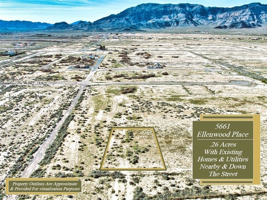 Out In Beautiful Northern Pahrump Is A Nice Quarter Of An Acre For Your Pahrump Investment~~5661 Ellenwood Place Is .26 Acres On A Future Cul-De-Sac Near Existing Homes With Amazing Mountain Views & Wide Open Spaces~~Utilities Have Not Made It To The Property Yet, But Existing Power, Water & Sewer Lines Are In The Area & Less Than 10 Parcels Away~~Conveniently Located 10 Minutes From The Center Of Town & Priced Right For Your Investment Plans, Make It Your Piece Of Pahrump Today!