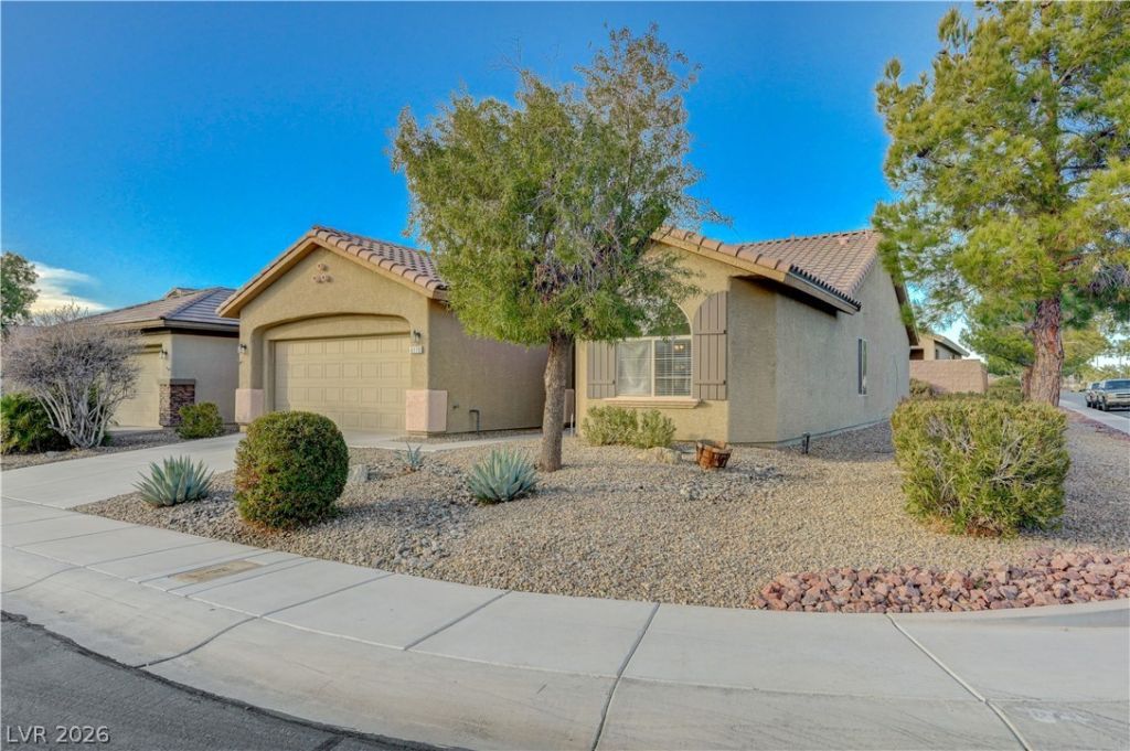 Corner Lot Home in 55+ Solera at Stallion Mountain largest Clydesdale model. 1718 sqft of open floor plan and upgraded flooring and new paint throughout, new irrigation system. This well loved home has a Formal Dining area, Large Living room, Kitchen with eat-in area and open windows. Huge walk-in closet in Primary bath with double sinks & separate shower. This move-in ready home is located in the vibrant Solera at Stallion Mountain community, offering resort-style amenities such as a pool, spa, clubhouse, fitness center, pickleball & tennis courts with a full calendar of social activities