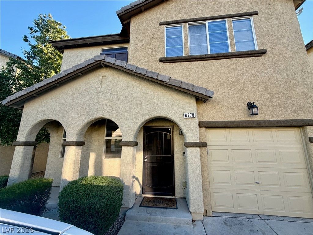 Charming 3-bedroom home in the desirable Southwest Las Vegas Valley located within a gated community. This home features an open floor plan with tile flooring throughout the main living areas, creating a bright and functional living space. The spacious living room flows into the kitchen, which offers granite countertops and ample cabinet space. Upstairs, the home includes new carpet in the bedrooms and laminate flooring throughout the upper level for added durability and style. Enjoy a low-maintenance backyard, ideal for relaxing outdoors, along with the convenience of a single-car garage for parking and storage. Conveniently located near shopping, dining, schools, and easy freeway access, providing excellent connectivity to the surrounding Southwest Las Vegas area.
